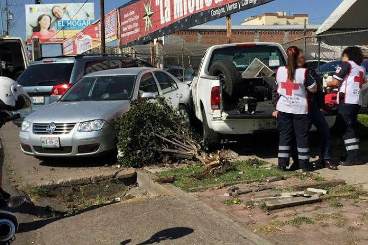 El chofer de una camioneta perdió el control de la misma y fue a dar contra dos vehículos que estaban estacionados a una orilla del camino y en exhibición, propiedad de un negocio de venta de automotores. Únicamente hubo un herido leve, copiloto de la unidad responsable, sumado a los daños materiales, de acuerdo con los datos recabados durante la labor periodística.