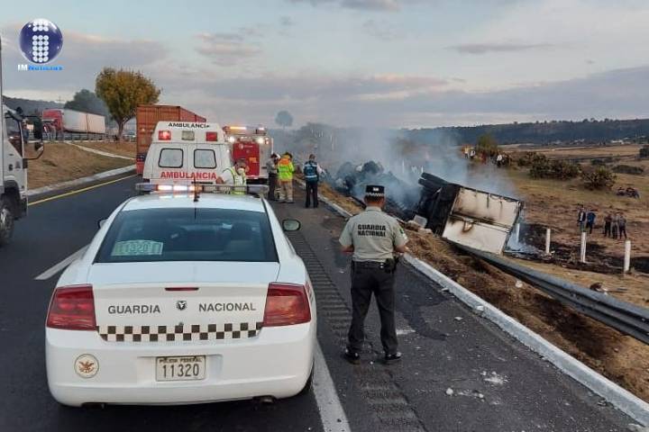 Un tráiler terminó volcado y calcinado en un desnivel ubicado a la orilla de la Autopista de Occidente, esto tras chocar contra una banda metálica de contención. Por fortuna no hubo lesionados ni muertos, solo afectaciones materiales, según informaron autoridades policiales.
