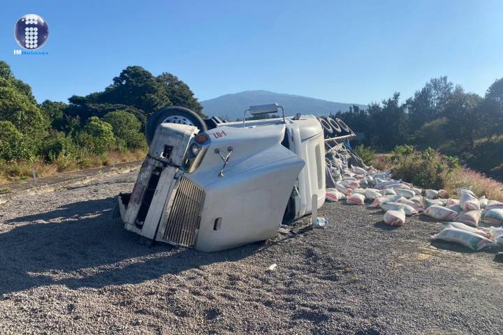 Un tráiler comercial se accidentó en el tramo carretero Pátzcuaro-Uruapan en la autopista "Siglo XXI", unidad que aparentemente se quedó sin frenos y volcó en una rampa de frenado, según la información obtenida en la labor periodística.