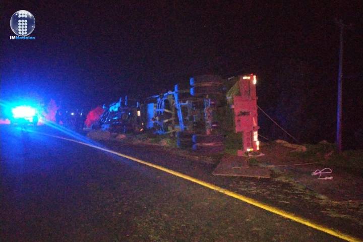 El acontecimiento fue en el kilómetro 52+300 de la vialidad antes citada. El tractocamión es uno de la marca International, de color blanc... Ver más...