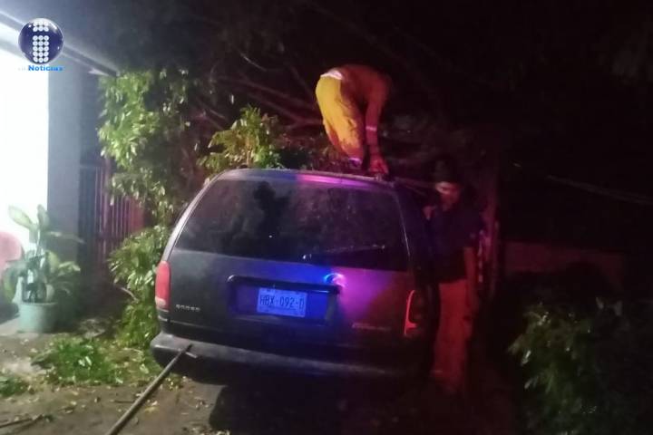 Un árbol resultó averiado como consecuencia de una rama que le cayó en el techo en el municipio de Apatzingán, y aunque el conductor estaba en la unidad, este resultó ileso.