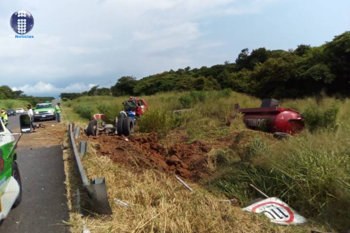 Dos bomberos de Protección Civil de Lázaro Cárdenas, Michoacán quedaron heridos y el camión pipa en el que iban terminó completamente destrozado, luego de que la unidad volcó y se salió de la cinta asfáltica en la autopista "Siglo XXI", esto al momento de que acudía a atender una emergencia.