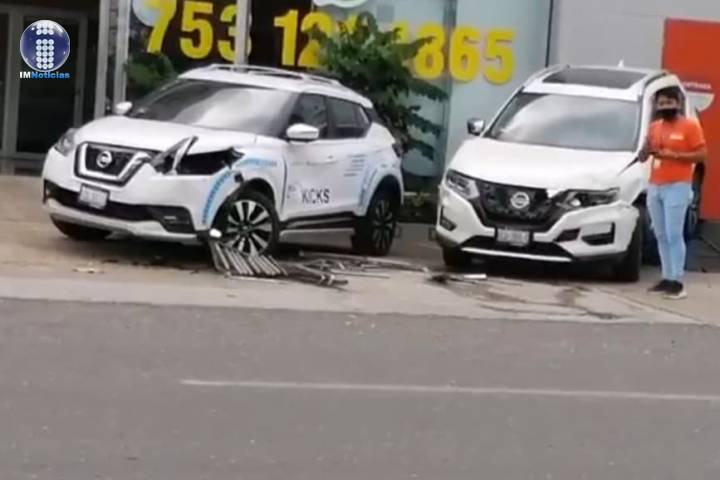 Un tractocamión impactó una camioneta particular al igual que dos vehículos de exhibición de la agencia de autos Nissan que se ubica en la Zona Industrial de Lázaro Cárdenas.