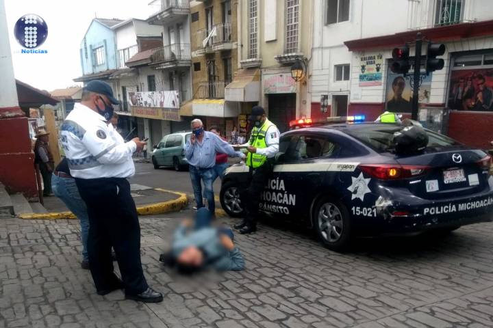 Un paramédico que viajaba a bordo de una motocicleta, resultó lesionado en una pierna, tras sufrir un accidente con una camioneta, en pleno centro de esta ciudad de Uruapan.