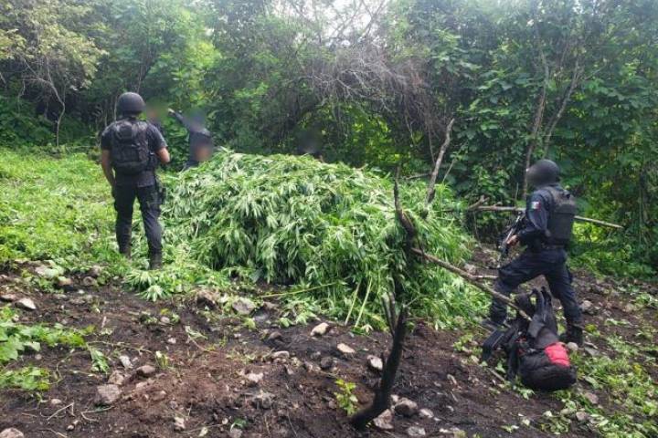 Agentes de la Policía Michoacán llevaban a cabo recorridos operativos en las inmediaciones de la localidad Píe de la Mesa, sitio donde localizaron plantíos de hierba color verde con las caracter... Ver más...