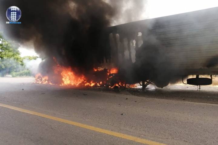 NOTICIAS 24/08/2020Se quema tráiler por falla mecánica en la carretera Apatzingán-Buenavista