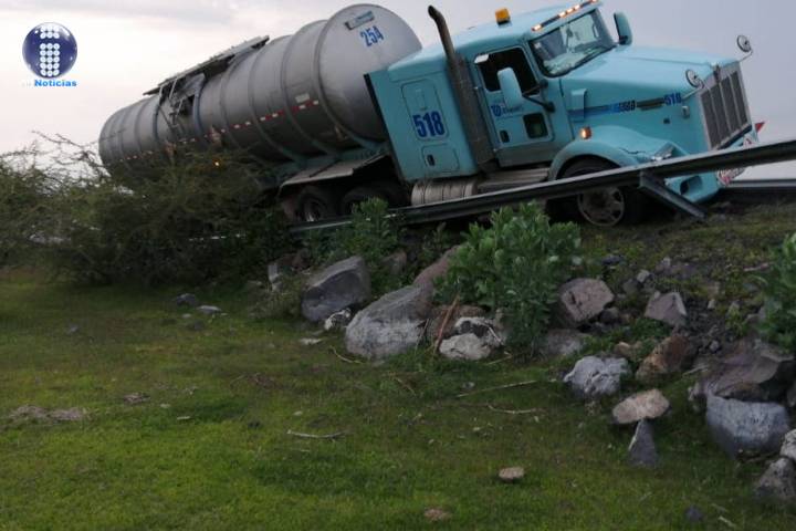 Un tráiler-pipa de una compañÃa de transportación de materiales peligrosos y de grado alimenticio se accidentó este lunes en la carretera Morelia-Salamanca en este municipio de Cuitzeo, sin que por fortuna hubiera vÃctimas que lamentar, de acuerdo con la información obtenida por esta agencia de noticias.