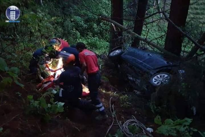 Elementos de la Subdirección General del Heroico Cuerpo de Bomberos y Protección Civil Municipal atendieron un siniestro en el que dos hombres del Estado de México resultaron heridos, debido a que el auto en que viajaban terminó volcado en un barranco de 10 metros de altura en el municipio de Zitácuaro.