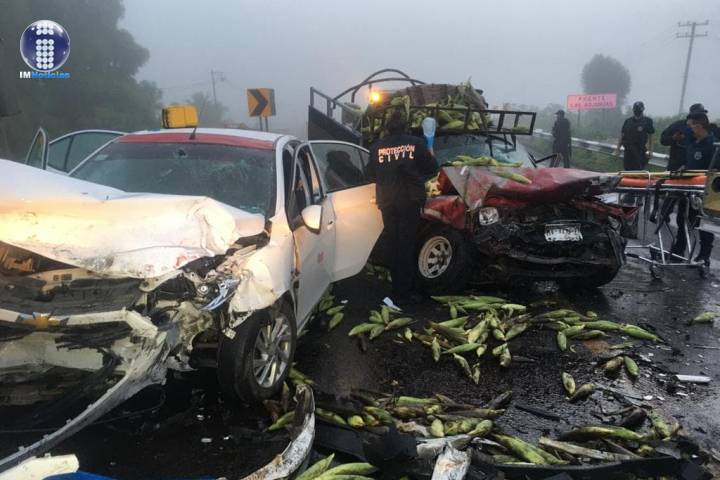 Un fuerte encontronazo de frente entre un taxi y una camioneta cargada con elotes dejo como saldo seis personas lesionadas y daños materiales por varios miles de pesos. Hechos ocurridos en este municipio de TangancÃcuaro.
