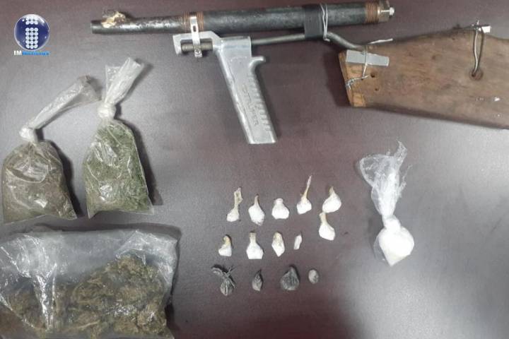 NOTICIAS 09/08/2020Asegura SSP a tres en posesión de arma de fuego y droga, en UruapanEn seguimiento a la estrategia de prevención del delito, elementos de la Secretaría de Seguridad Pública (SSP), detuvieron a tres personas del sexo masculino en posesión de un arma de fuego de fabricación casera y envoltorios con hierba verde seca al parecer marihuana y sustancia granulada con las características de la metanfetamina, en esta ciudad.