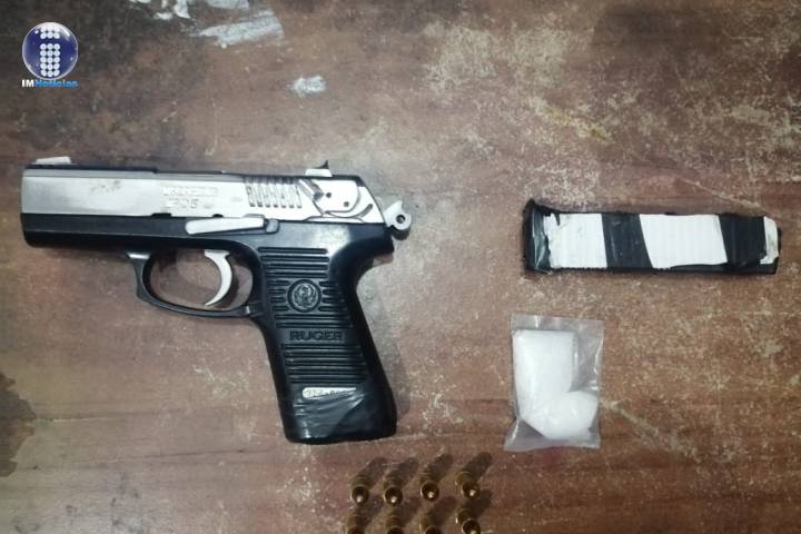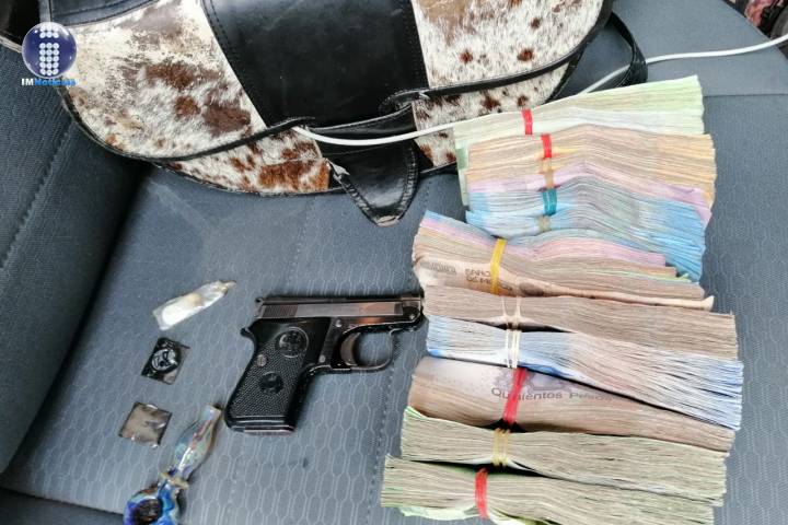 Resultado de tareas de prevención y vigilancia, elementos de la Secretaría de Seguridad Pública (SSP), detuvieron a una persona del sexo masculino, en posesión de un arma de fuego, así como 235 mil pesos en billetes de diferentes denominaciones, cuya procedencia no fue acreditada, y varios envoltorios que contenían sustancia granulada, al parecer metanfetamina.