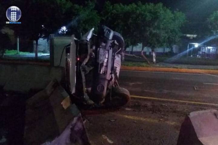 NOTICIAS 06/08/2020Vuelca camioneta tras chocar contra muro en la Av. Madero Oriente