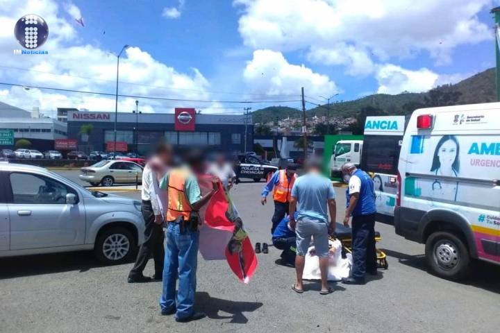 Un joven motociclista resultó herido al ser atropellado por un auto compacto sobre la avenida Morelos, en la zona norte de la ciudad de Morelia, refirieron fuentes policiales y de rescate.