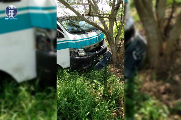 Una combi del servicio colectivo se estrelló contra un árbol, tras lo cual el chofer y una pasajera resultaron heridos en el municipio de Lázaro Cárdenas.