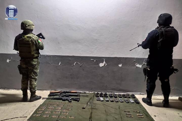 Como resultado de tareas de vigilancia, personal de las secretarías de Seguridad Pública (SSP), y de la Defensa Nacional (SEDENA), aseguró a tres personas del sexo masculino, en posesión de tres fusiles, 408 cartuchos útiles y 14 cargadores.