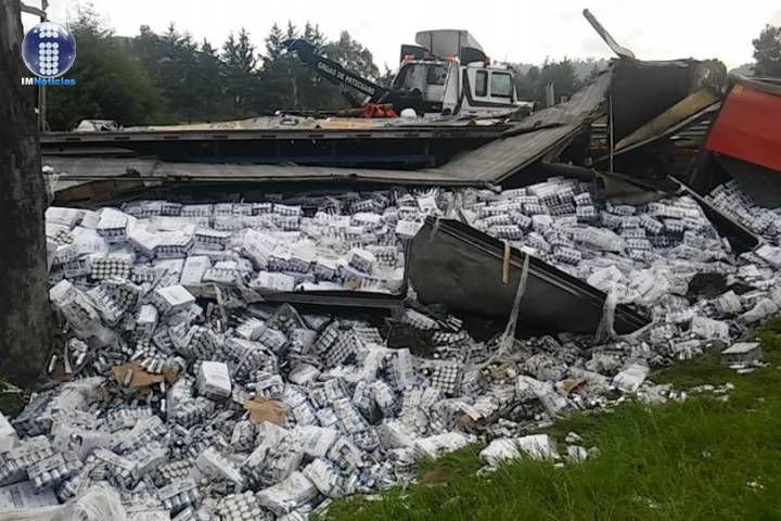 Un tráiler que llevaba un cargamento de cervezas volcó en la carretera Morelia-Pátzcuaro, a la altura de este municipio. A consecuencia de la situación el producto quedó regado sobre el terreno y hubo cuantiosos daños materiales; sin embargo, afortunadamente no se registraron víctimas que lamentar.