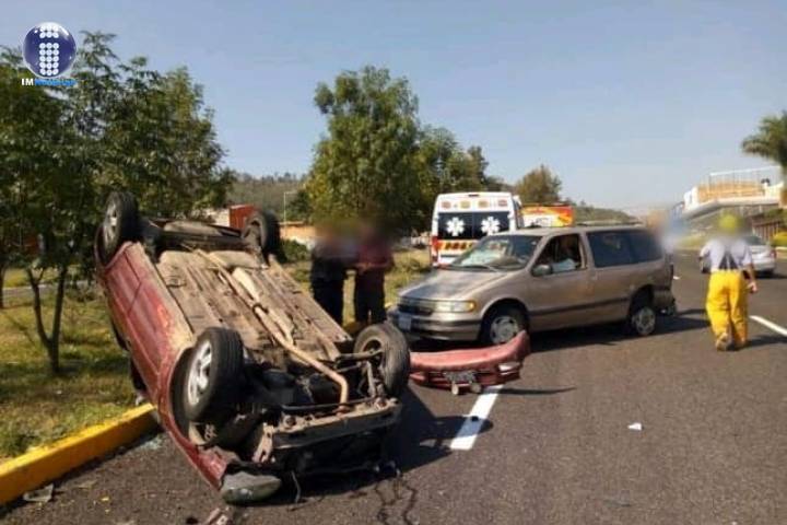 Dos vehículos protagonizaron un choque y uno de ellos acabó volcado sobre la carretera Morelia-Pátzcuaro. El percance dejó daños materiales y dos personas con heridas leves, informaron fuentes de rescate.