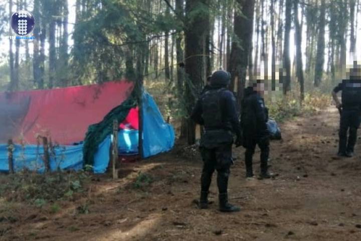 Elementos de la Policía Michoacán efectuaban labores para la disuasión del delito en el cerro Las Cruces, sitio donde ubicaron un campamento en el que se localizaron diversas prendas de vestir.
