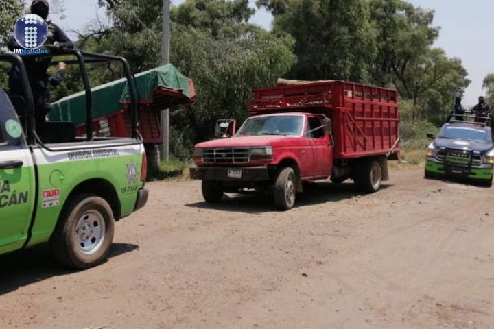Personal de la Policía Michoacán implementaba una acción operativa sobre el tramo carretero Morelia-Mil Cumbres, cuando localizaron una camioneta cargada con rollos de materia forestal, por lo cual se procedió a realizar una inspección.