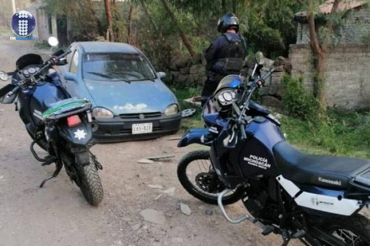 Derivado de recorridos de vigilancia en la colonia San Lorenzo ItzÃcuaro, elementos de la PolicÃa Michoacán ubicaron en la calle Buenavista la unidad de la marca Chevrolet, color azul, en aparente estado de abandono, procediendo a inspeccionarla.
