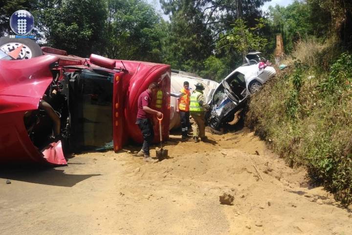 Un aparatoso choque-volcadura entre un tractocamión y un taxi dejó como saldo cinco personas lesionadas, las cuales viajaban en la unidad de alquiler, a decir de fuentes policiacas. El accidente se registró este lunes en la carretera Santa Clara del Cobre-Ario de Rosales en este municipio.