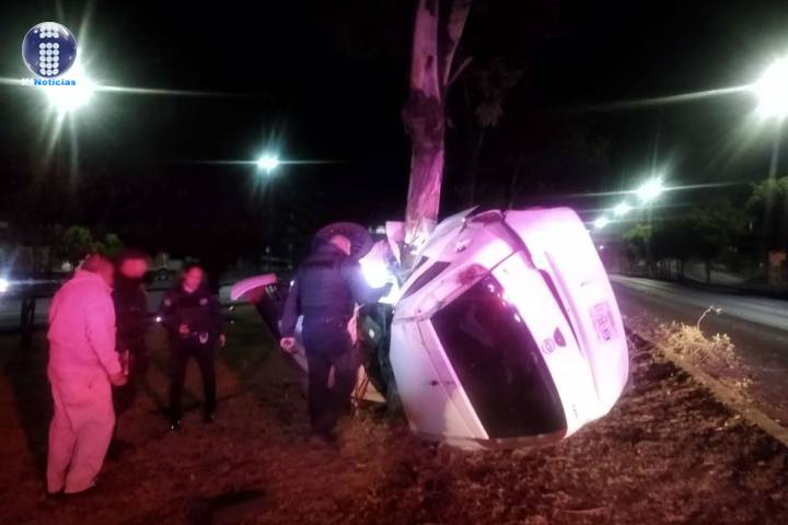 Un hombre resultó lesionado tras la volcadura de su automóvil, el cual acabó incrustado en un árbol ubicado en el camellón central del Periférico Paseo de la República, en la zona norte de Morelia.