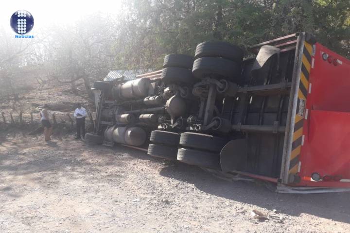 Un camión repartidor de una empresa refresquera tuvo una volcadura sobre la carretera federal Huetamo-Tiquicheo en el kilómetro 163 + 200 metros, a la altura de la comunidad Las Trincheras, municipio de Huetamo, donde por fortuna no se registraron pérdidas humanas, pero sí daños materiales.