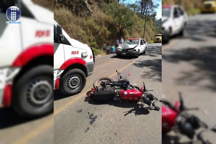 El choque entre una motocicleta y un taxi dejó como consecuencia que el conductor de la primera unidad en mención lesionado en la carretera Tacámbaro-Chupio, a la altura del Motel Castello, en el municipio de Tacámbaro.