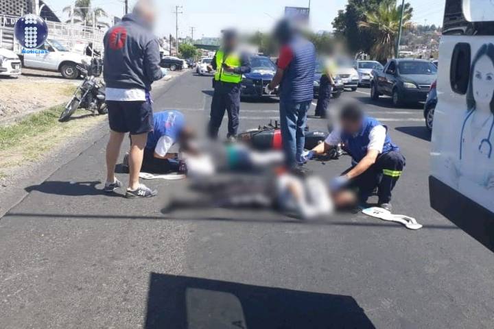 Una peatona resultó lesionada al ser atropellada por una motociclista, persona que también quedó lastimada tras caer de la unidad, percance ocurrido sobre el Periférico Paseo de la República, al sur de la ciudad de Morelia.