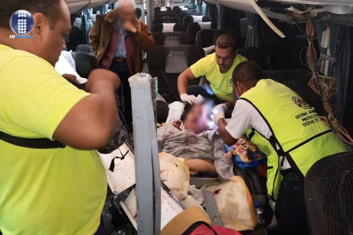 NOTICIAS 16/02/2020Chocan dos autobuses de pasajerosCuatro personas resultaron heridas debido a que dos autobuses de pasajeros chocaron de frente en el municipio guerrerense de Tecpan de Galeana.
