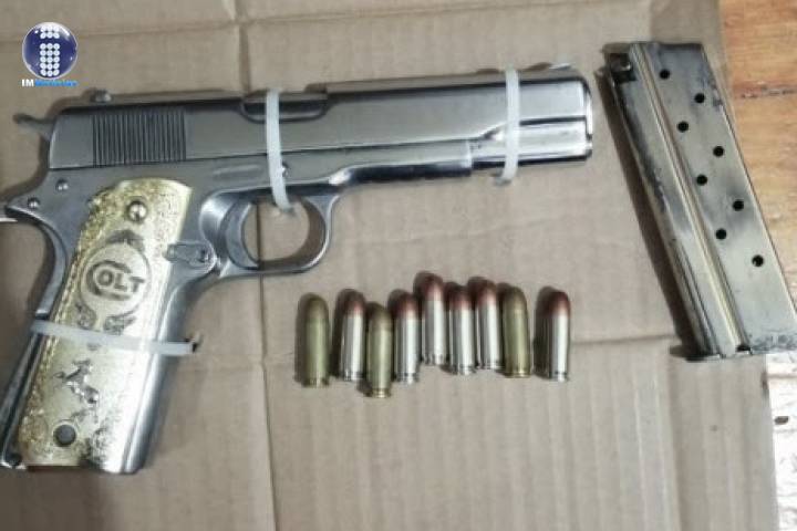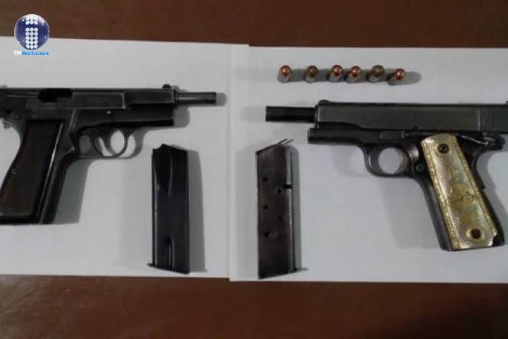 Elementos de la Policía Michoacán realizaban labores operativas en la colonia Centro de esta población, sitio donde se detuvo a Sergio R., y Gerardo C., quienes tenían en su poder dos armas de fuego calibres .9 mm., y .45 mm., respectivamente.