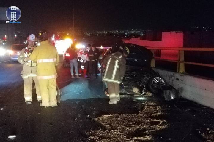 Un vehÃculo compacto chocó contra un muro de contención central ubicado en el puente de la avenida Madero Poniente, justo arriba del distribuidor vial salida a Quiroga. Por fortuna no hubo lesionados ni fallecidos, indicaron rescatistas y policÃas.