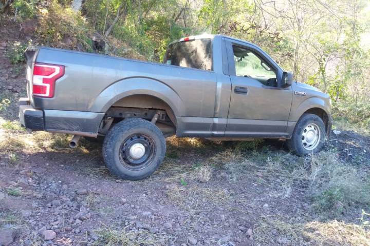 La acción operativa se llevó a cabo en los límites de este municipio con La Huacana, lugar donde agentes de la Policía Michoacán localizaron una camioneta marca Ford, en aparente estado de abandono.
