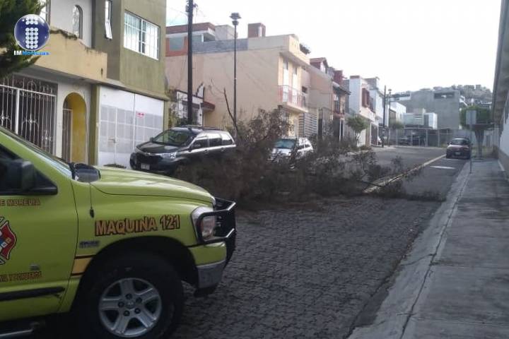 Un árbol colapsó y alcanzó a dañar levemente dos vehículos que estaban aparcados en la vía pública de la colonia Fray Antonio de San Miguel Iglesias, indicaron contactos de rescate.