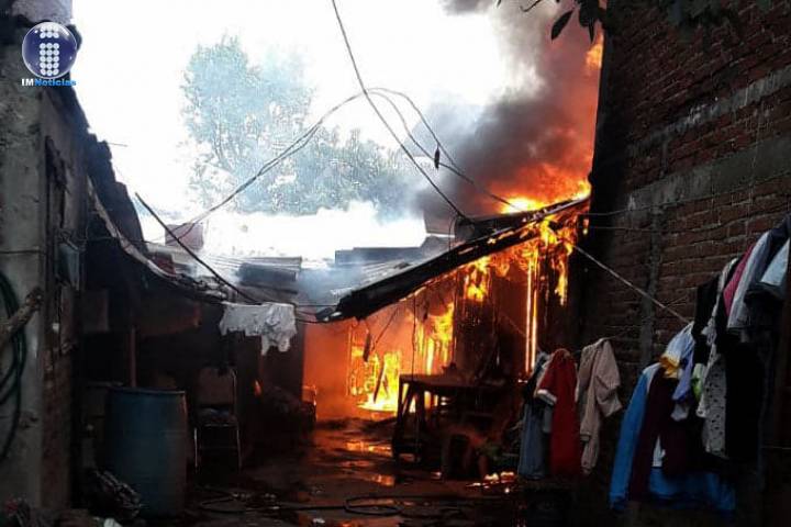 Un fuerte incendio se registró este día en dos viviendas de la colonia El Inguambal, al poniente de la ciudad de Uruapan, donde los daños materiales fueron cuantiosos y además dos personas recibieron atención de los cuerpos de auxilio de crisis nerviosa e intoxicación.