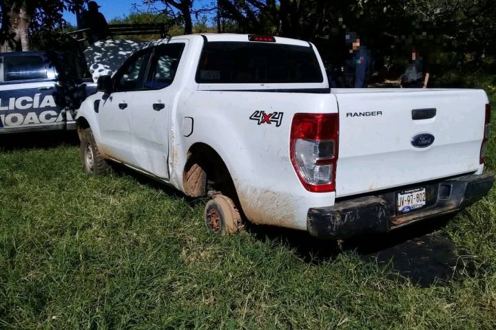 En recorrido de vigilancia, agentes de la PolicÃa Michoacán ubicaron a bordo de la carretera la unidad marca Ford en aparente estado de abandono, procediendo a inspeccionarla.