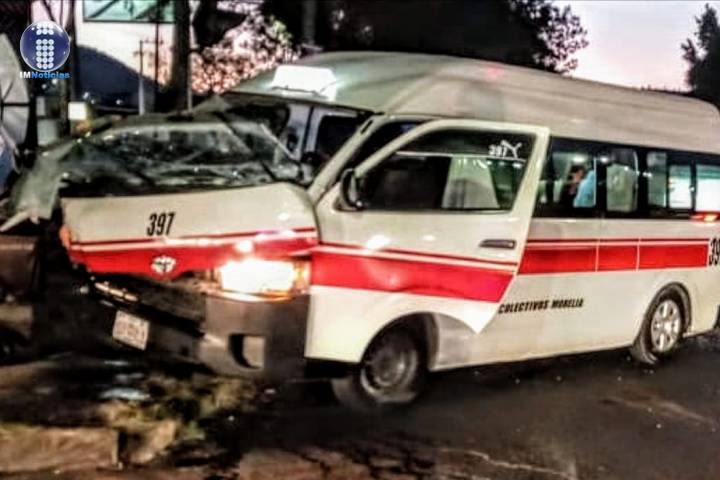 Al menos cuatro personas quedaron lesionadas tras el choque de una combi del servicio público urbano contra la retaguardia de un camión, esto sobre el Periférico Paseo de la República, Sector Revolución, en la ciudad de Morelia.