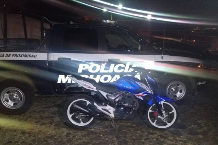 La acción operativa se registró sobre la calle Primero de Mayo en la colonia El Arenal, lugar donde oficiales de la Policía Michoacán, localizaron una motocicleta marca Honda, en aparente estado de abandono.