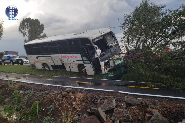 Un autobús de pasajeros de la lÃnea Purhépechas se estrelló contra un árbol a un costado de la Carretera Morelia - Salamanca sin que por fortuna se reportaran personas lesionadas.