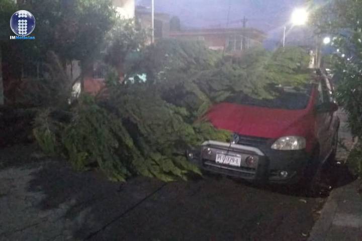 En la colonia Ventura Puente, un árbol de aproximadamente cuatro metros colapsó y sus ramas alcanzaron a perjudicar un automóvil. Por fortuna no había ocupantes en el citado vehículo, refirieron fuentes policiales.