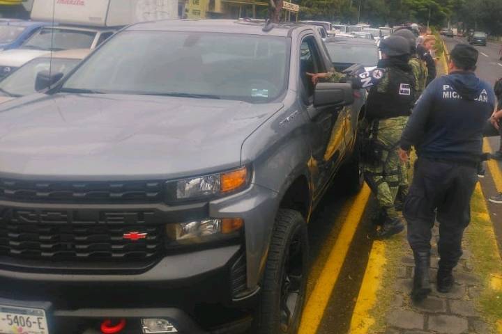 El hecho se registró sobre la calle Vidal Solís esquina con Santos Degollado en la colonia Centro, lugar donde elementos de la Policía Michoacán, detuvieron a Ramiro R., quien viajaba a bordo de una camioneta marca Nissan, línea pick-up.