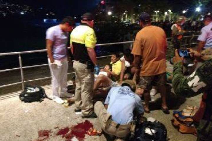 Los lesionados seis turistas que disfrutaban de las bellezas de Acapulco, alrededor de las 22:00 horas, quedaron en medio del fuego cruzado cuando varios sujetos correteaban a un masculino desconocido en las inmediaciones del parque de la Reyna, en la terminal maritima de la ciudad.