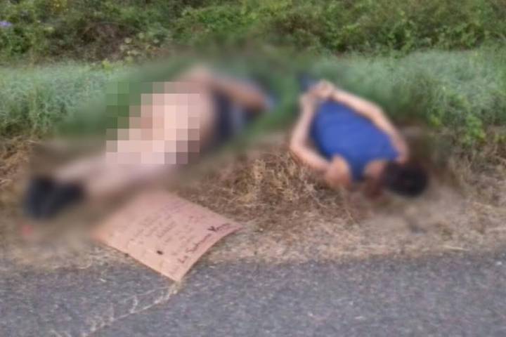 Los cadáveres de dos hombres que están en calidad de desconocidos fueron encontrados la mañana de este martes en el puente vehicular del fraccionamiento Los Girasoles, situado en la salida de esta ciudad hacia Cuatro Caminos, de acuerdo con la información brindada por fuentes policiales. Sus victimarios les dejaron letrero.