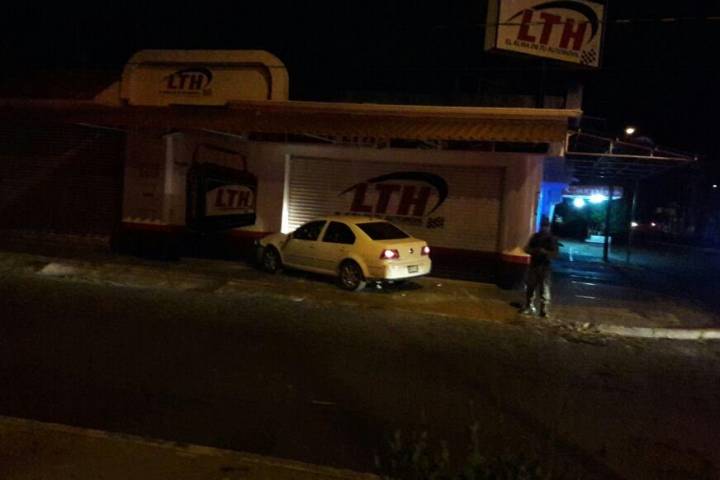 Un automovilista fue perseguido por los ocupantes de otro vehículo, quienes lo acribillaron a balazos, instante en que el coche de la víctima terminó estrellado contra la cortina de un comercio de venta de baterías para carros.