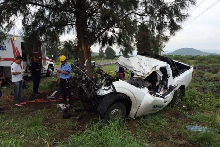 Un aparatoso accidente registrado sobre la Autopista de Occidente dejo como saldo dos hombres muerto y uno gravemente lesionado al chocar la camioneta en la que viajaban contra un árbol, según trascendió en la cobertura noticiosa.