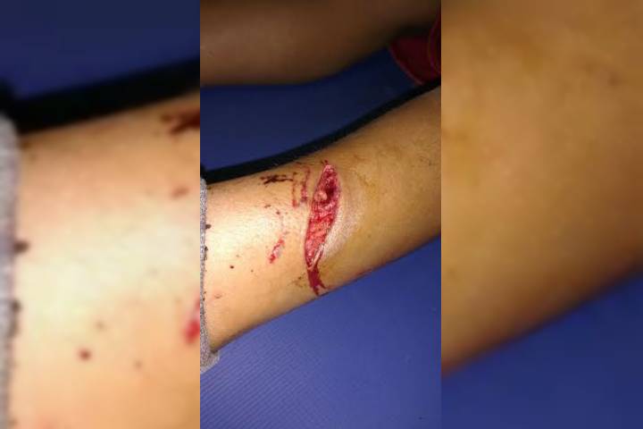 Un niño resultó seriamente lesionado en una de sus piernas al ser mordido por un perro, cuando se dirigía a su domicilio en su bicicleta, según la versión dada por el menor a los socorristas.