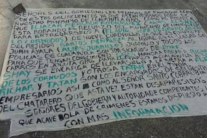 Tres cadáveres con huellas de tortura y lesiones de arma de fuego fueron tirados la mañana de este jueves a un lado de la autopista Siglo XXI, en este municipio de La Unión. A los fallecidos les dejaron una lona con un mensaje donde los acusan de ser presuntos integrantes del crimen organizado, de acuerdo con los datos recabados en el trabajo periodístico.