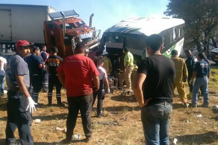 NOTICIAS 01/04/2016Carambola entre camioneta, autobús y tráiler deja un muerto y 13 heridos