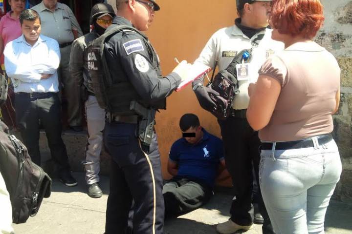 Un individuo le arrebató su bolso a una mujer en el centro de esta ciudad y trató de escapar, pero al cruzar intempestivamente una calle se impactó contra un vehículo de alquiler y al gritar la víctima que se trataba de un ladrón éste fue detenido por el taxista y otros transeúntes, después los policías privados del Agrupamiento Tigre llegaron en apoyo y aseguraron al indiciado para enseguida entregarlo a la Gendarmería.