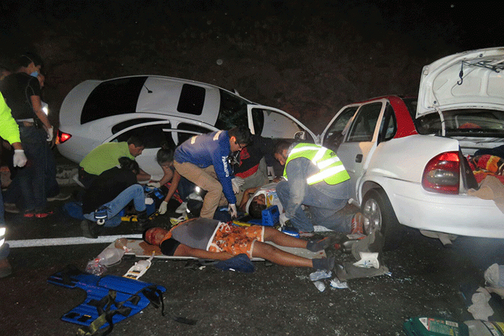 NOTICIAS 17/01/2016Dos muertos y 6 lesionados deja encontronazo de un taxi y un autoDos muertos y seis lesionados fue el saldo fatal de un choque de frente entre un taxi y un automóvil de uso particular, suceso en el que uno de los coches invadió el carril contrario al que circulaba, según dieron a conocer fuentes policiales.